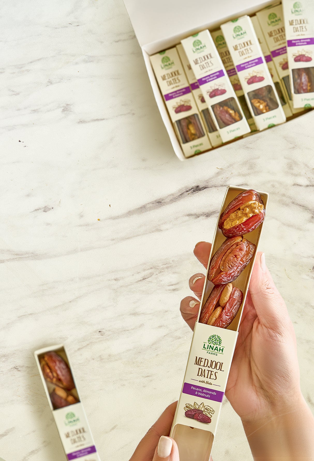 At Linah Farms, everything starts with our farm. We’re passionate about growing the finest Medjool dates, ensuring every bite is packed with natural sweetness and unmatched quality. From our farm to your table, quality isn’t just a goal—it’s our way of life.